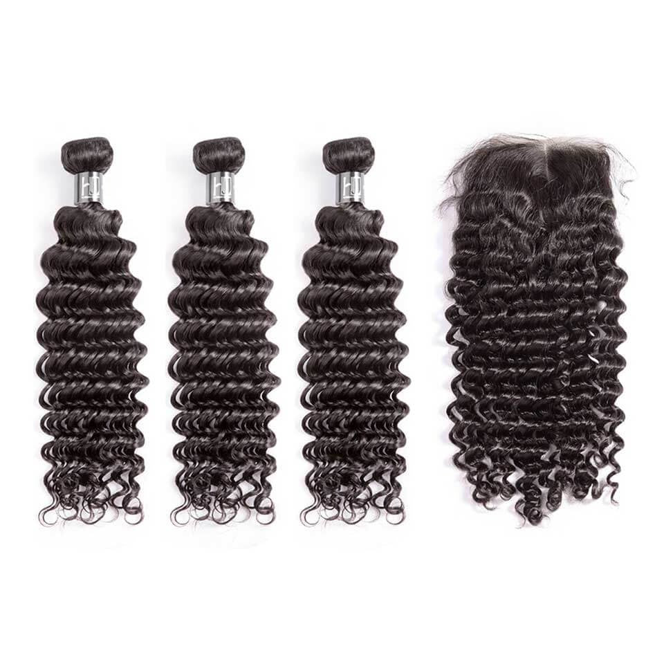 HJ WEAVE BEAUTY 10A Brazilian Mink Hair Deep Wave Bundle Deal -
