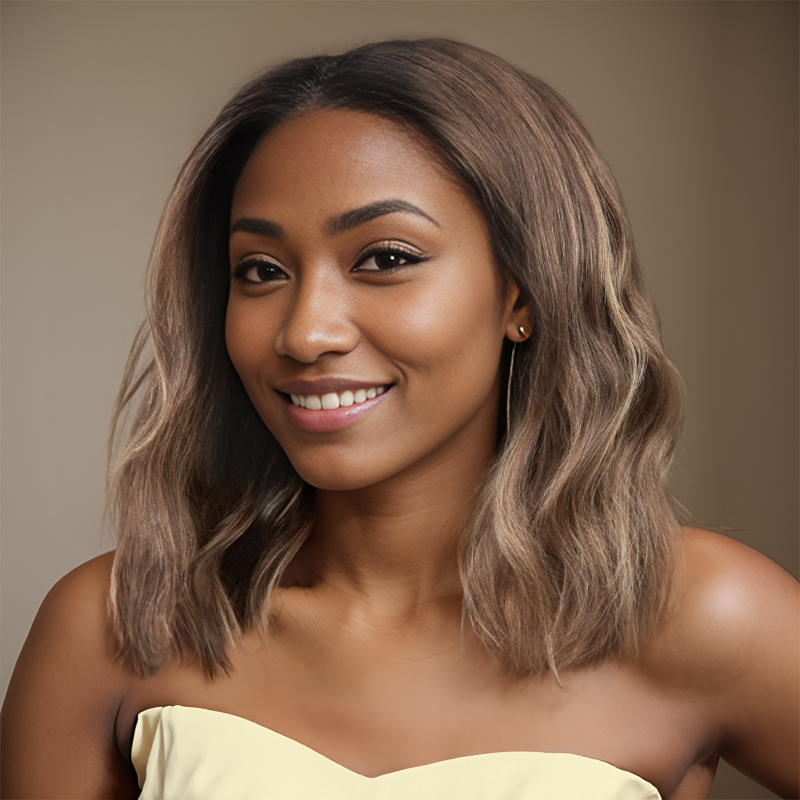 Gorgeous Glueless Brown Ombre Bob Wear Go 5x5 Wavy Wig 100% Human Hair -