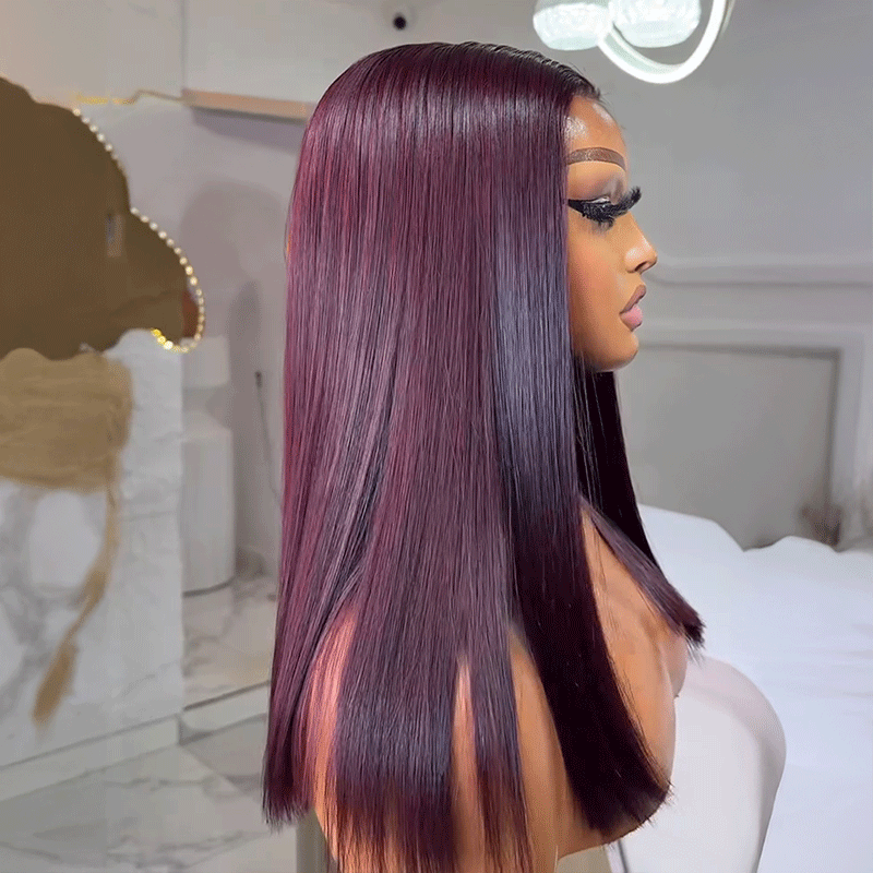 Silky Glueless Dark Purple Color 5x5 Bleached Knots Bob Wig Straight Human Hair -