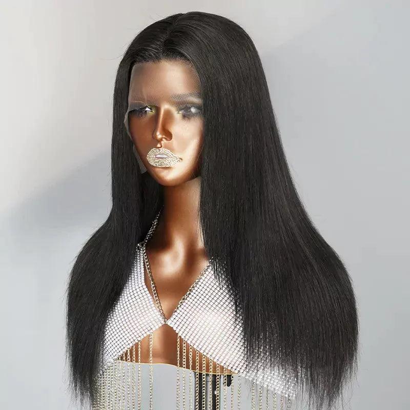 13x4 Retro Pencil Gray Color Lace Frontal Human Hair Wig -