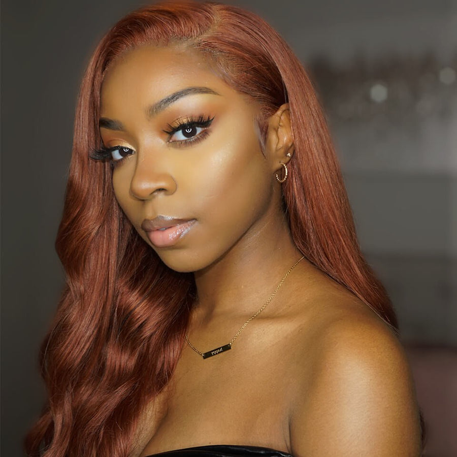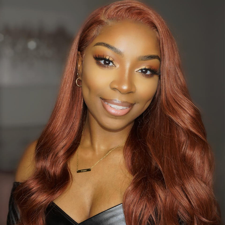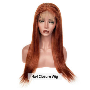 #33 Ginger Colored Human Hair Lace Front Wig Straight 180% Density