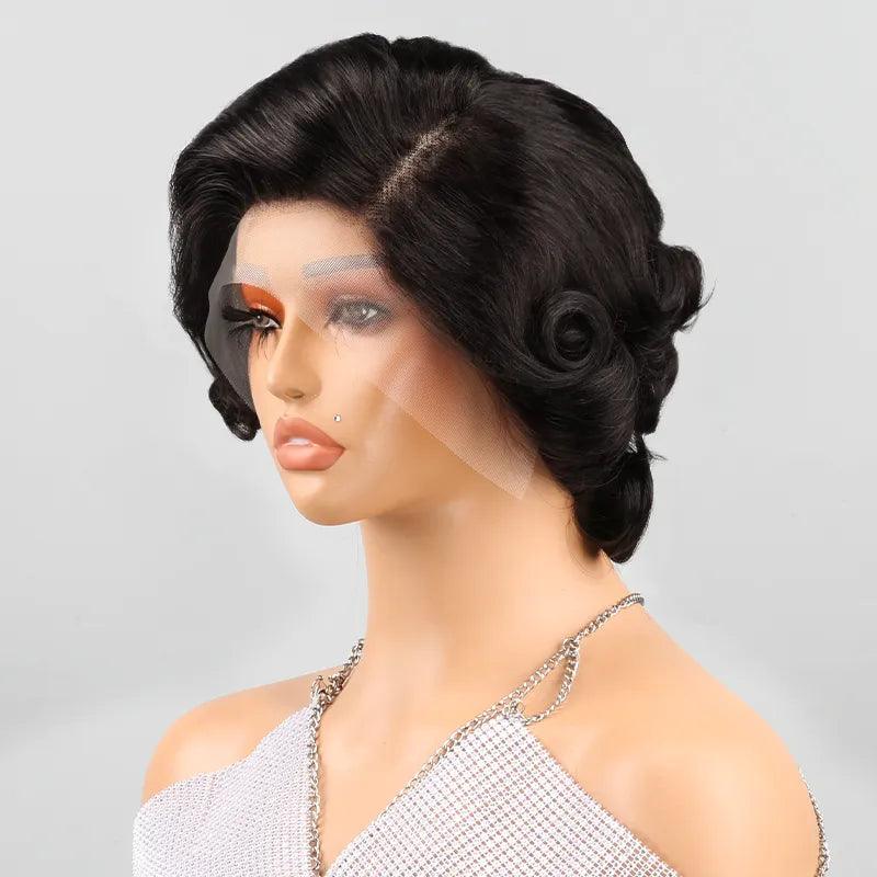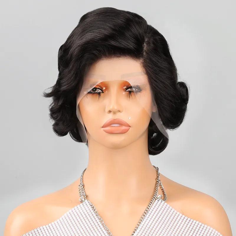 13x4 Romantic Rose Curly Bob Wig Right Side Part Lace Frontal Wig