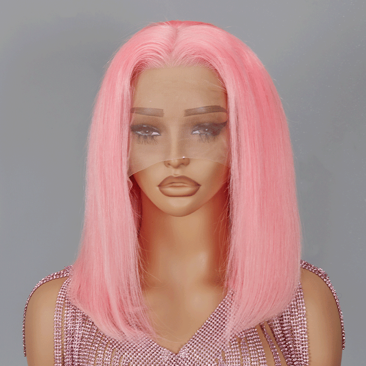 13x4 Bob Wig Pink Color Lace Frontal Human Hair -