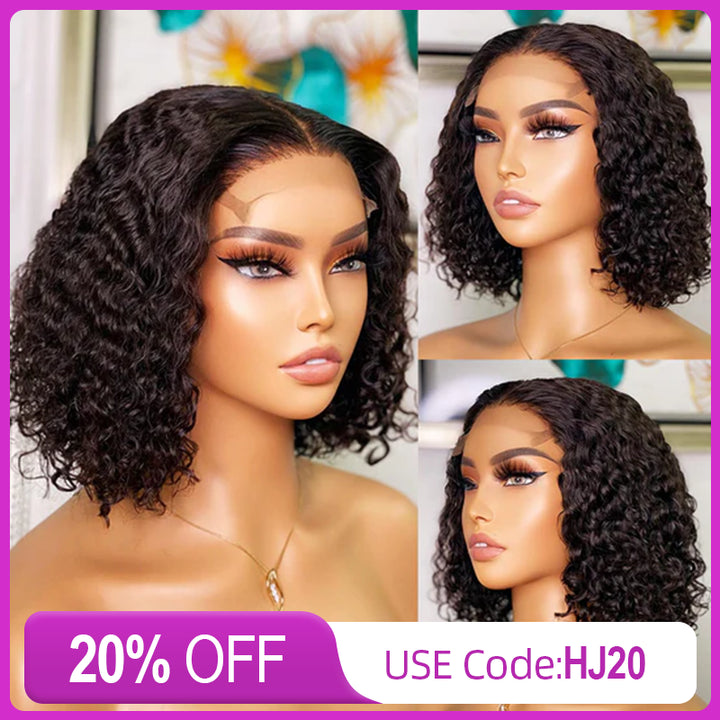 9x6 Glueless Natural Bouncy Bob Jerry Curls Wig 250% Density -