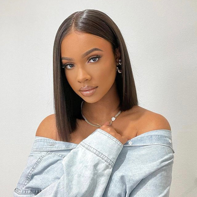 2x6 Lace Silky Deep Middle Part Straight Bob Wig 100% Human Hair -