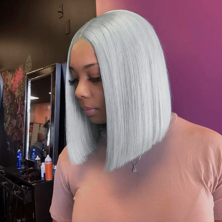 Easy to Wear 3 Seconds Glueless Milk Tea Gray Color 13x4 Straight Bob Wig -