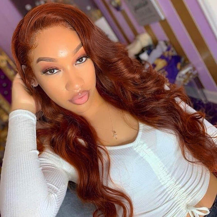 # 33 Cabello humano color jengibre Peluca delantera de encaje Recto 180% Densidad -