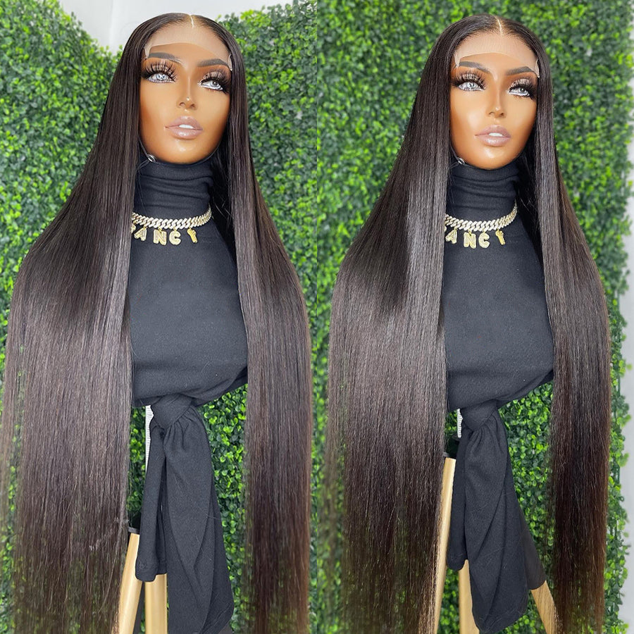 30-40 pulgadas 5x5 HD Cierre de encaje Peluca recta Pelo largo virgen 180% Densidad