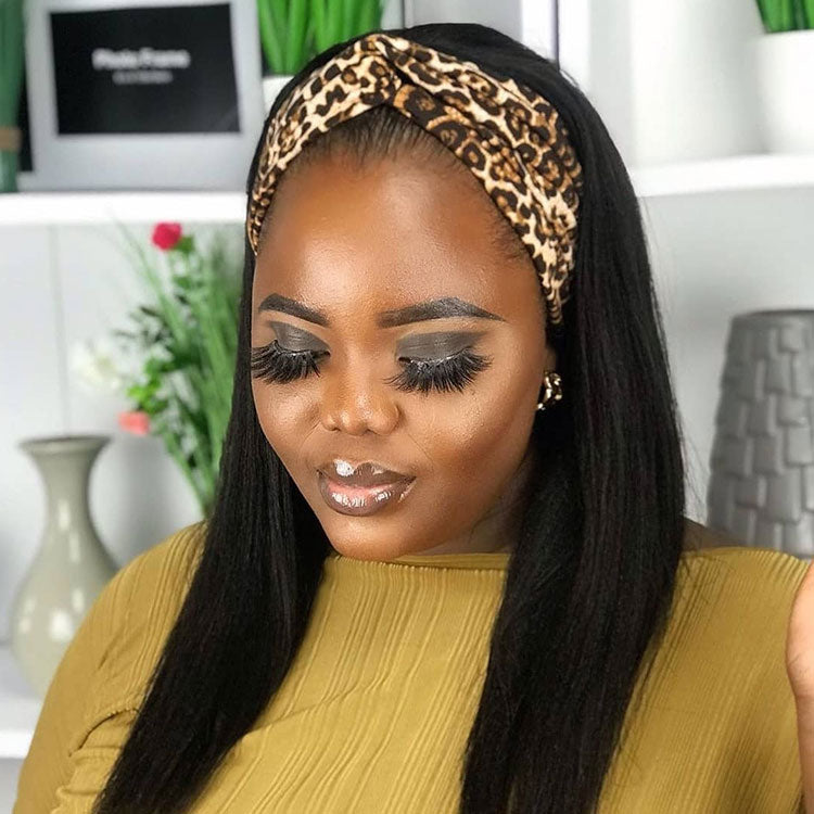 Kinky Straight 180% Density Diadema Peluca Cabello humano