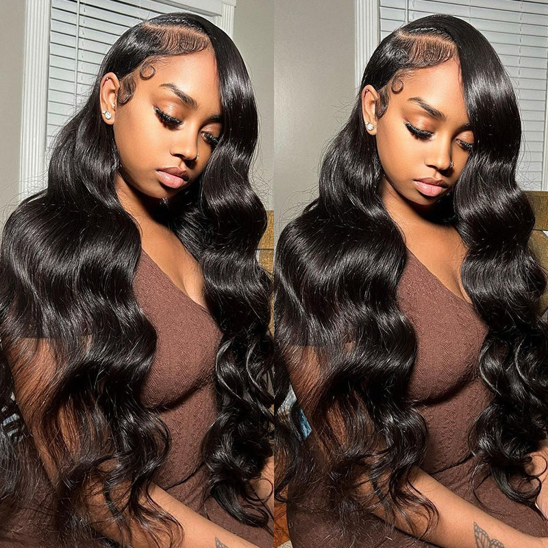 #30 Color Encaje transparente 5 × 5 Peluca de cabello ondulado frontal del cuerpo 250% Densidad (3 paquetes + 1 cierre)