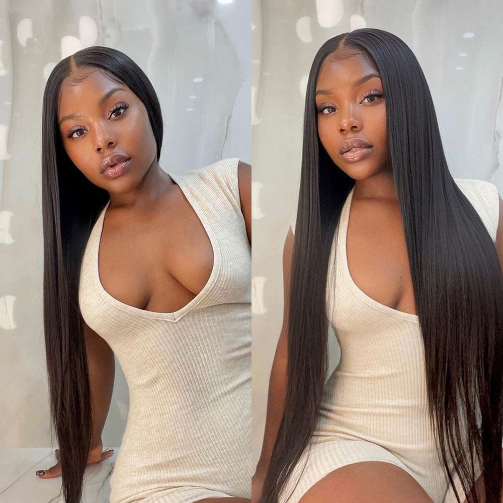 Peluca recta con cierre de encaje 4x4 Peluca de encaje de cabello humano