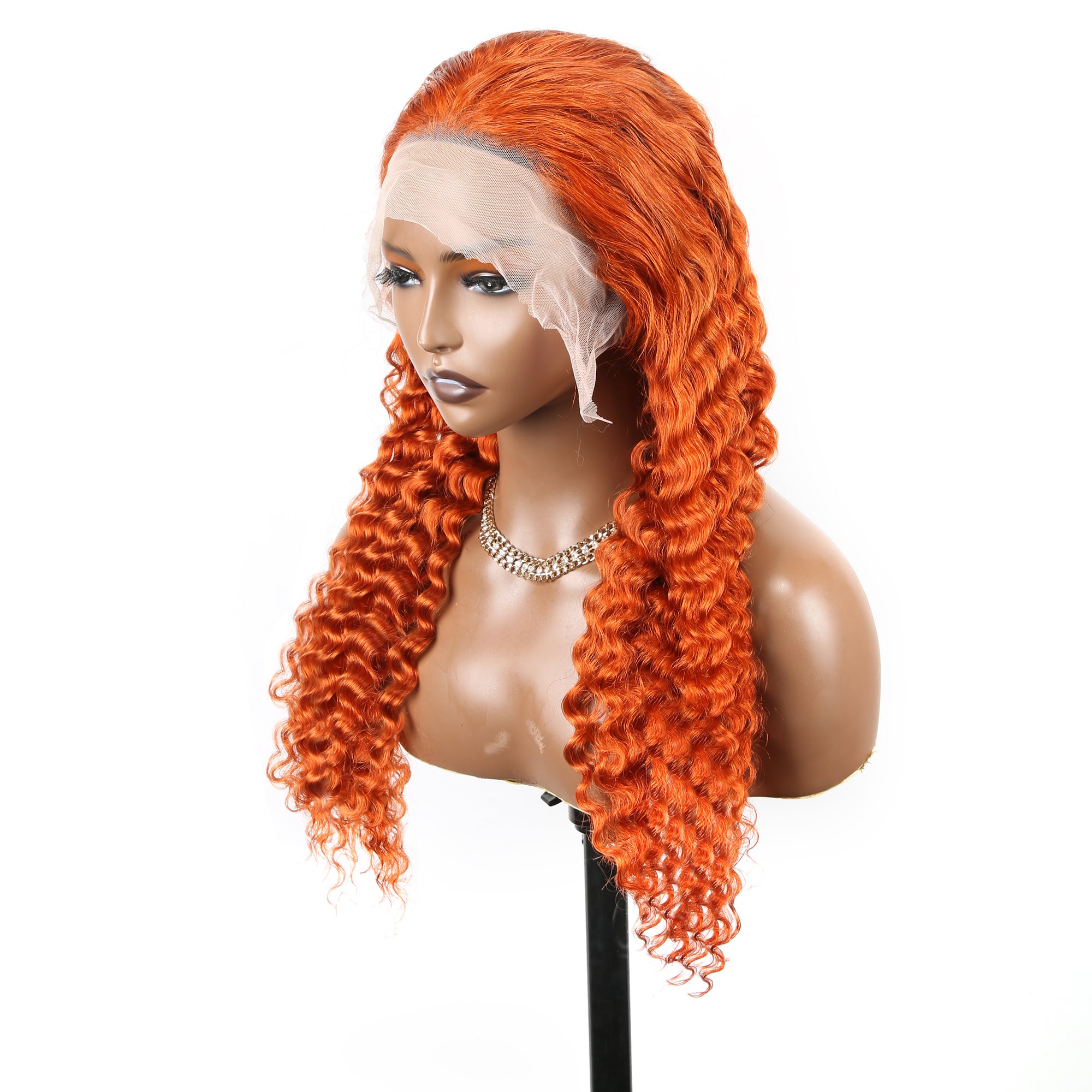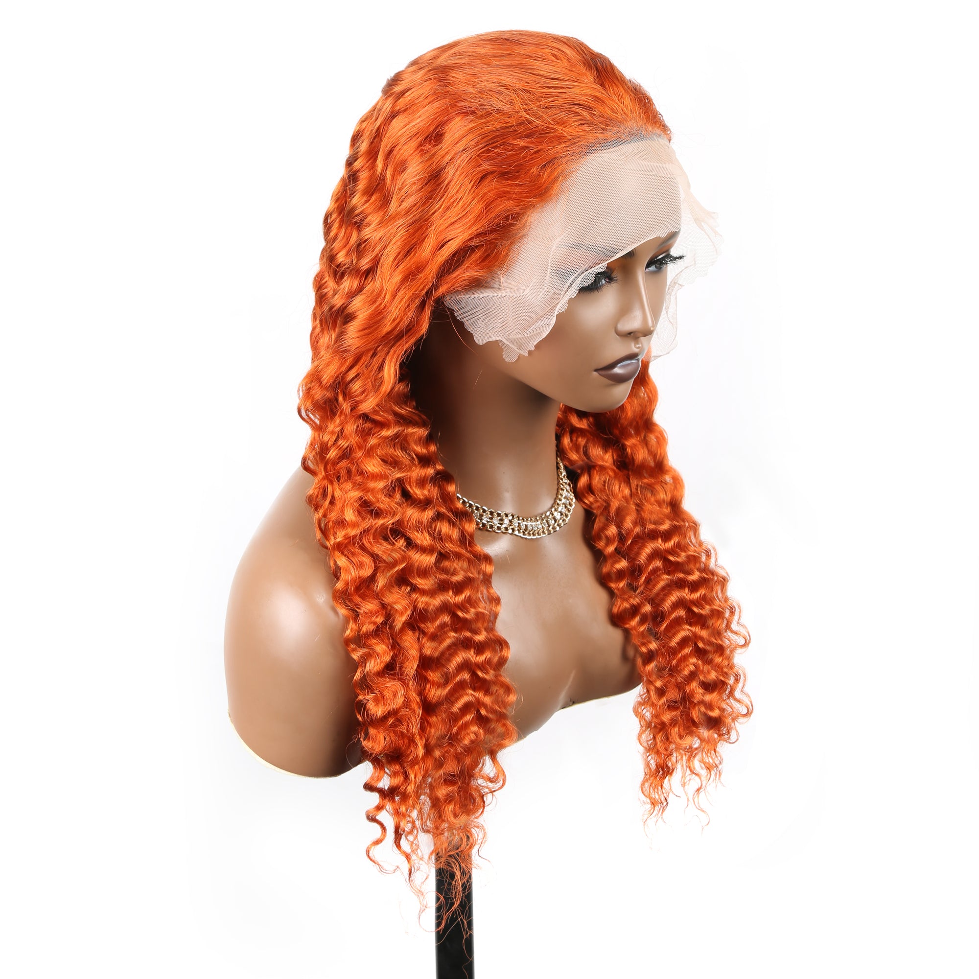 Light Orange Curly Deep Wave Colored Hair Lace Wig Brazilian Human Hair Wigs