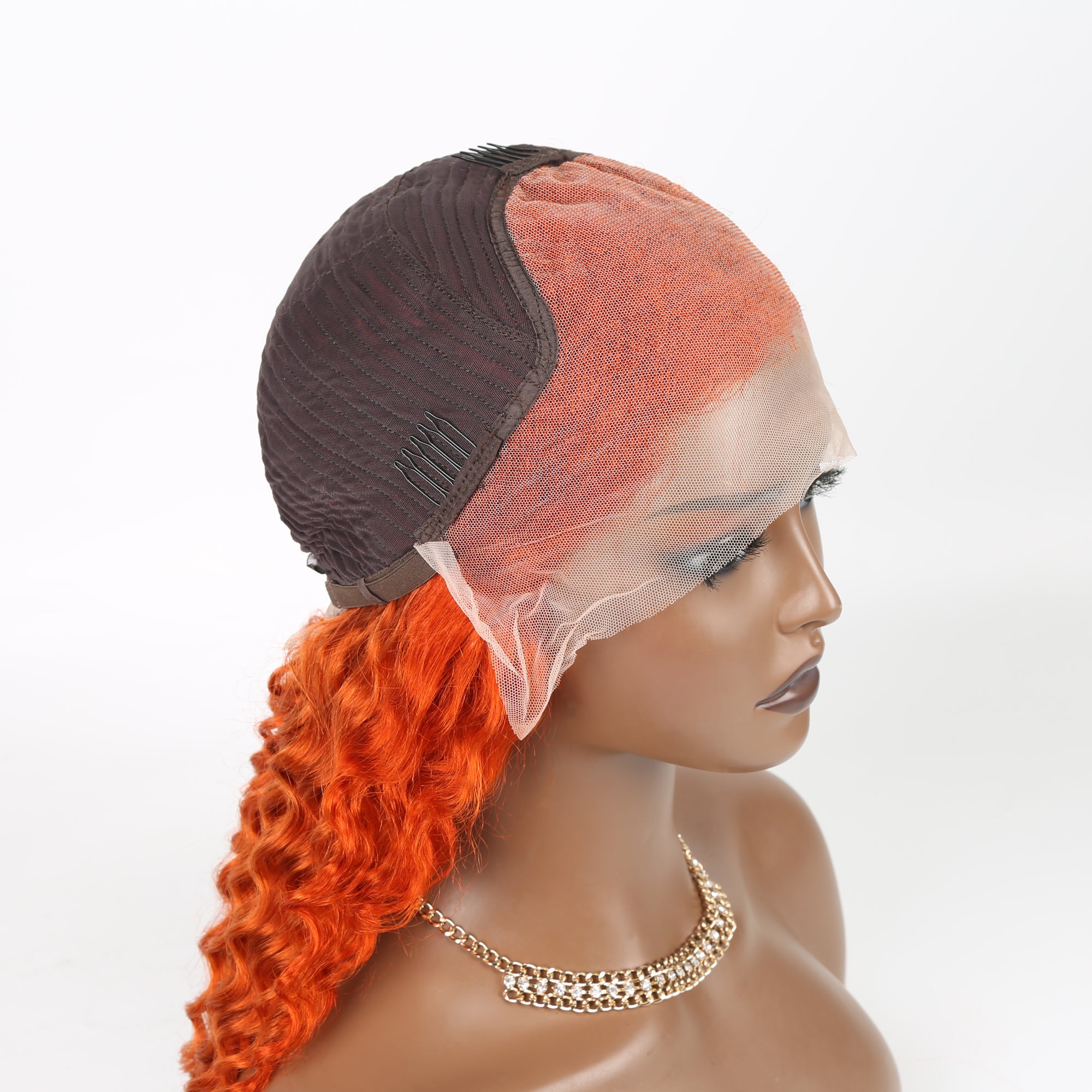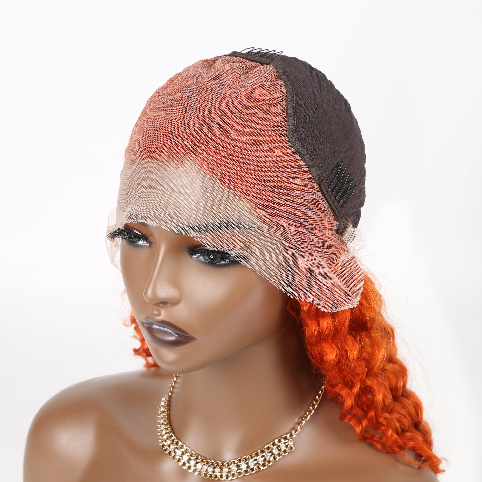 Orange Colored Deep Wave Colored Hair Lace Wig Brazilian Human Hair Wigs