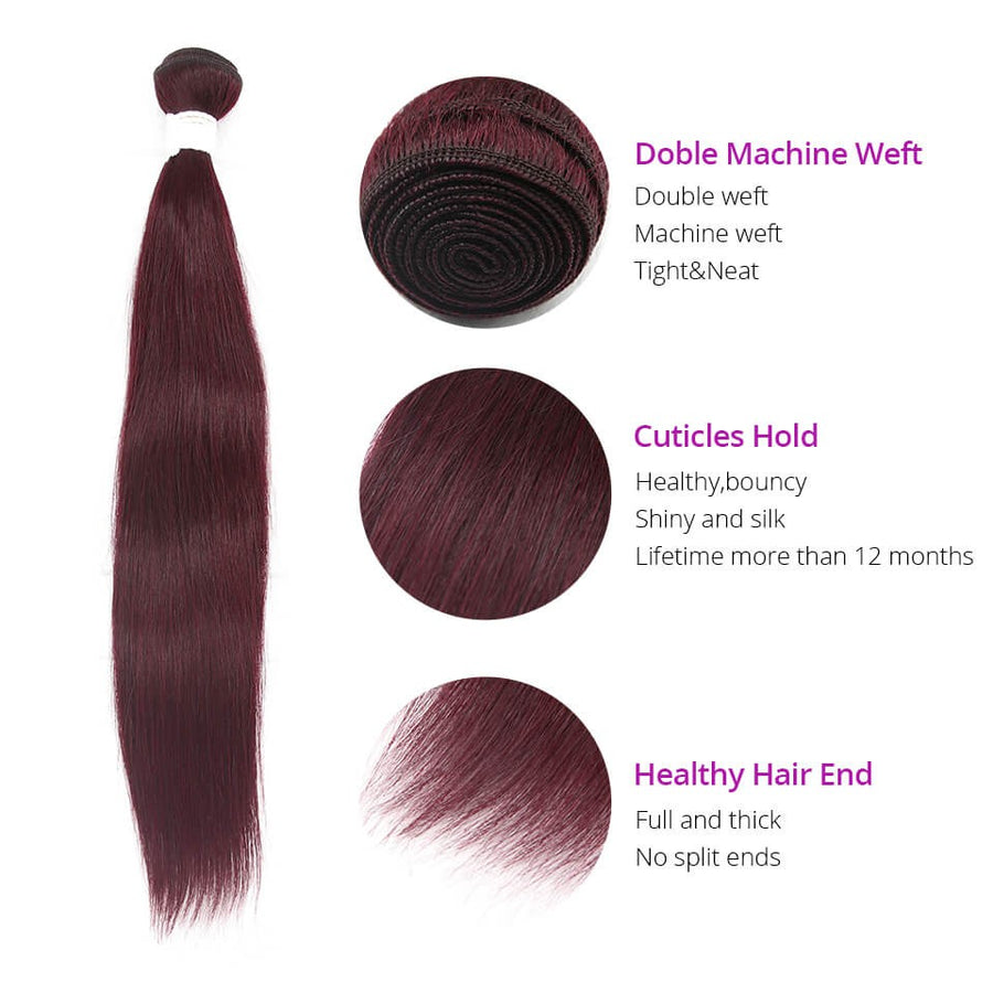 HJ Weave Beauty #99J Colored Virgin Hair Straight Bundle Deal