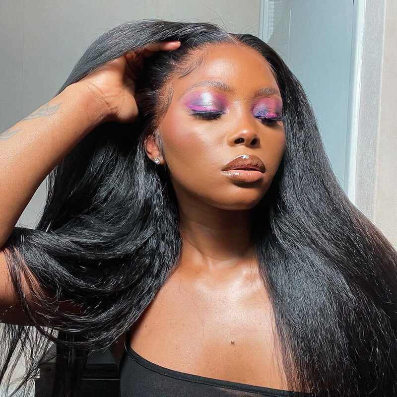 Kinky Straight 13x4 Lace Front Wig Human Virgin Hair Lace Wig