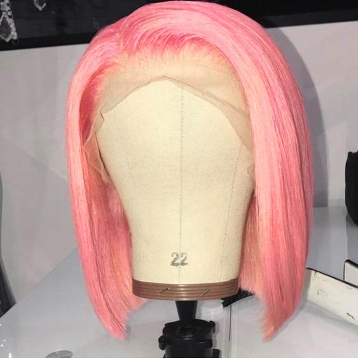 Pink color 13x4 Lace Front Straight Bob Wigs 180% Density