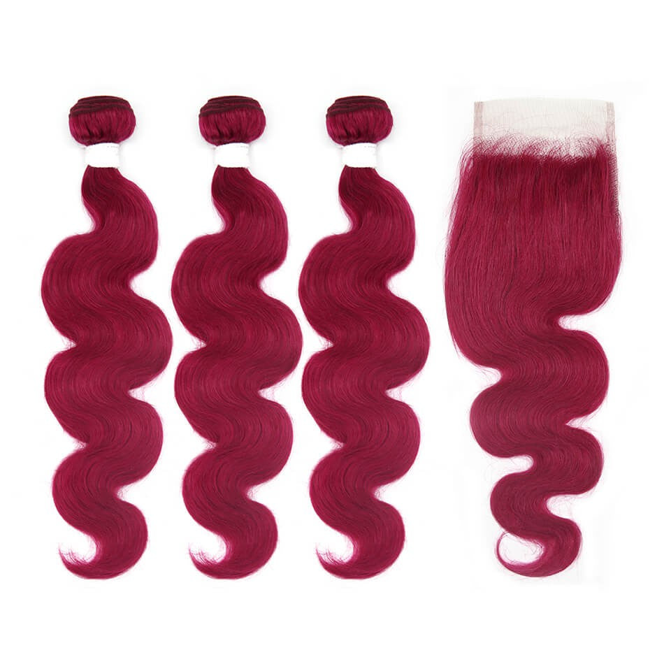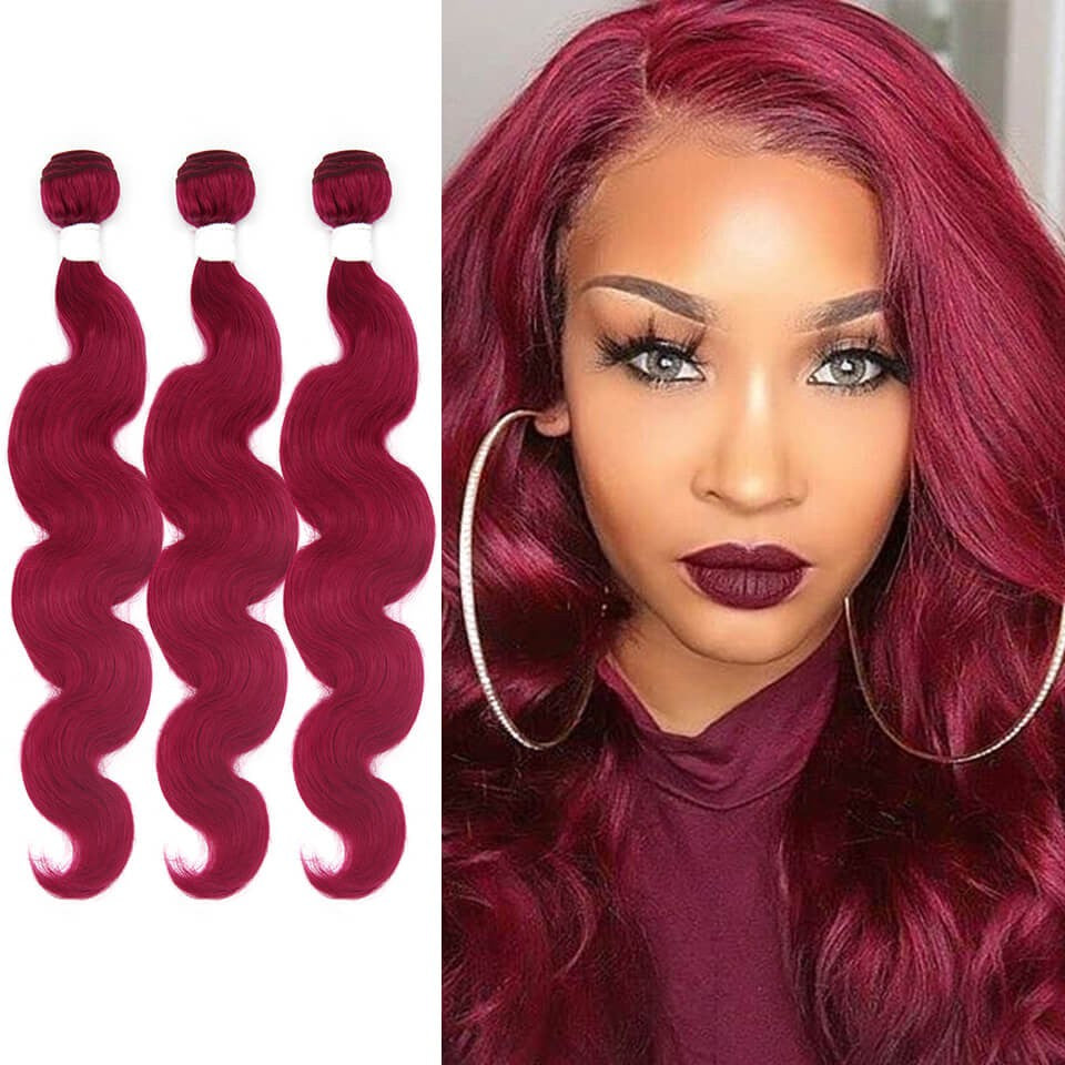 HJ Weave Beauty Burgundy Colored Virgin Hair Body Wave Bundle Deal
