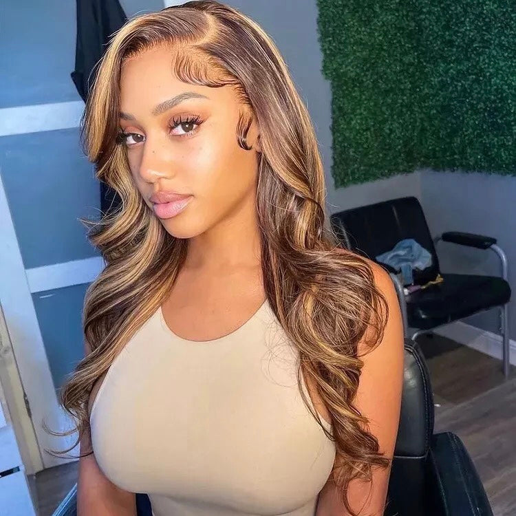 #4/27 Highlight Piano Fall Color 13x4 Lace Front Body Wave Human Hair Wigs -
