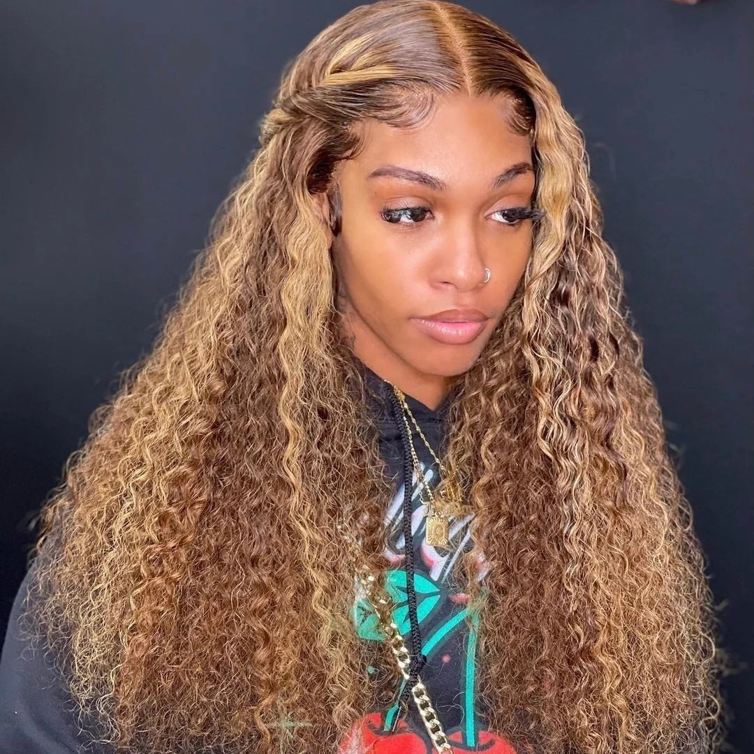 #4/27 Highlight Piano Fall Color 4x4 Lace Closure Curly Deep Wave Human Hair Wigs
