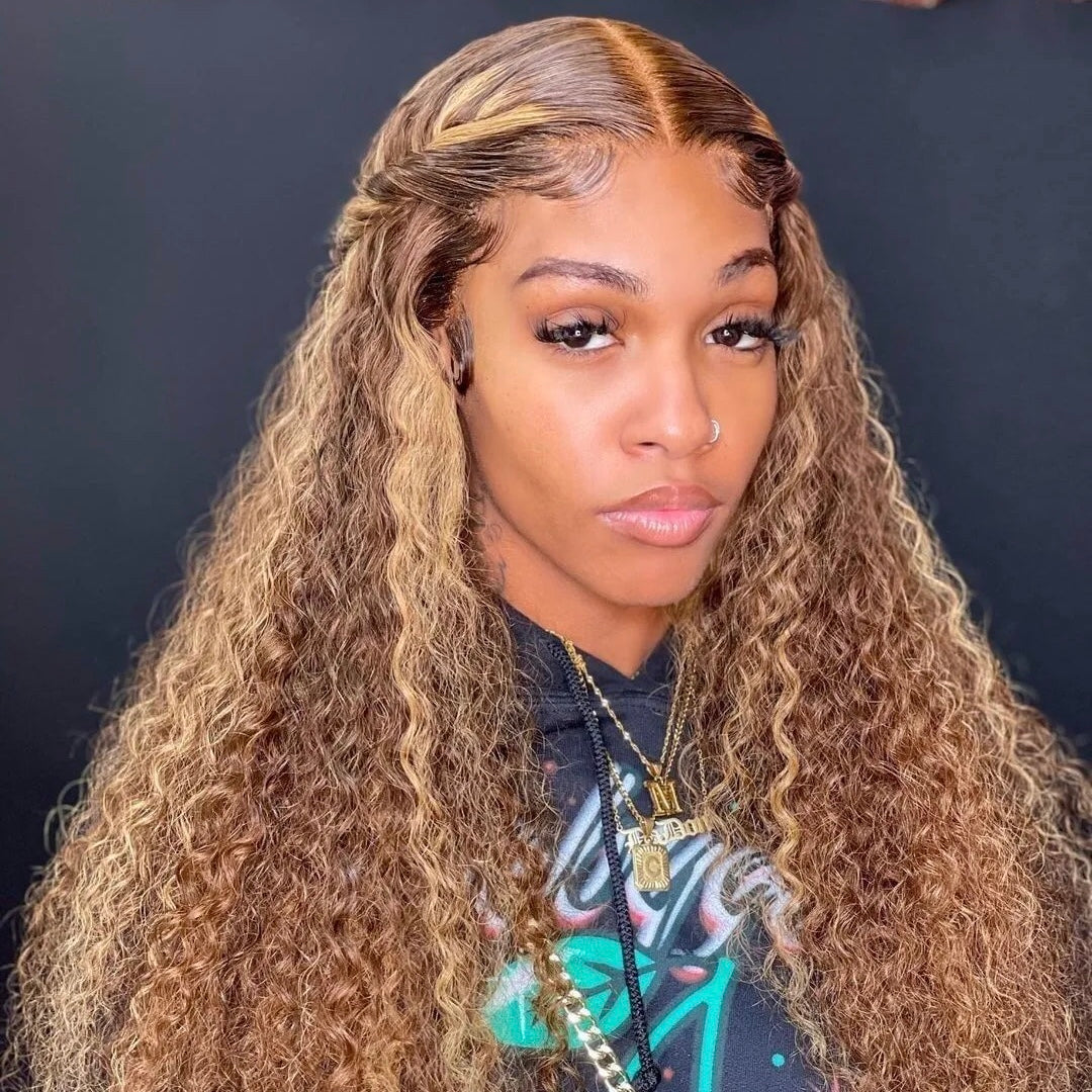 #4/27 Highlight Piano Fall Color 13x4 Curly Deep Wave Lace Front Human Hair Wigs -