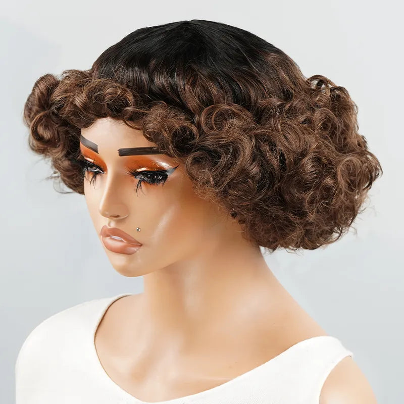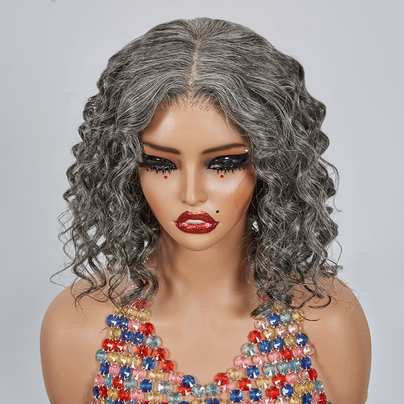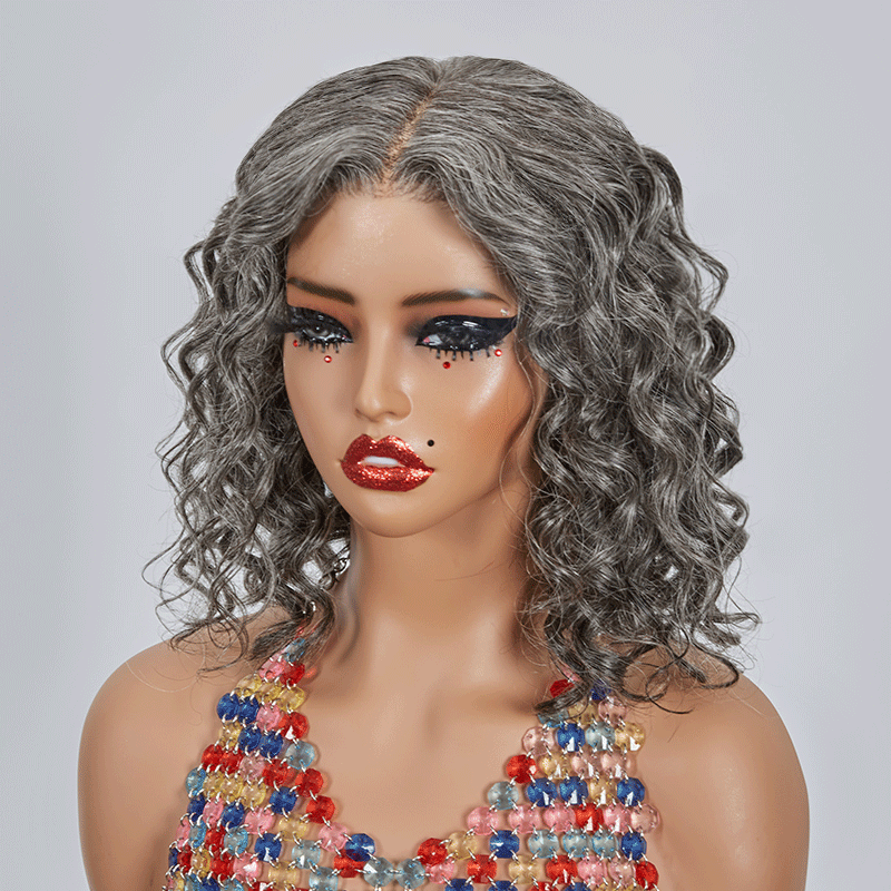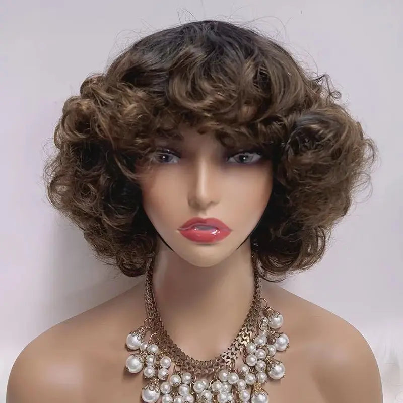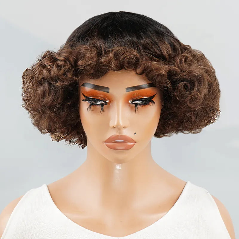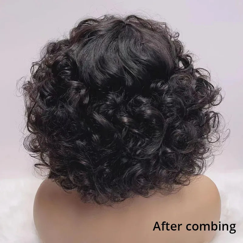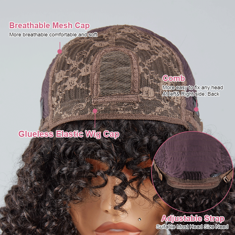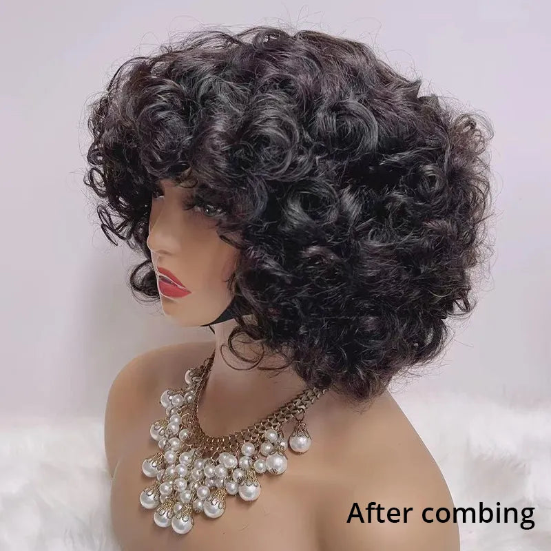 Glueless Bob Wig With Bangs Water Curly Textured Human Hair -