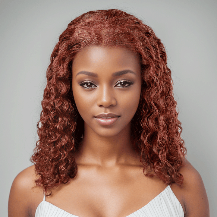 9x6 Glueless Dark Reddish Brown Bob Curly Wig