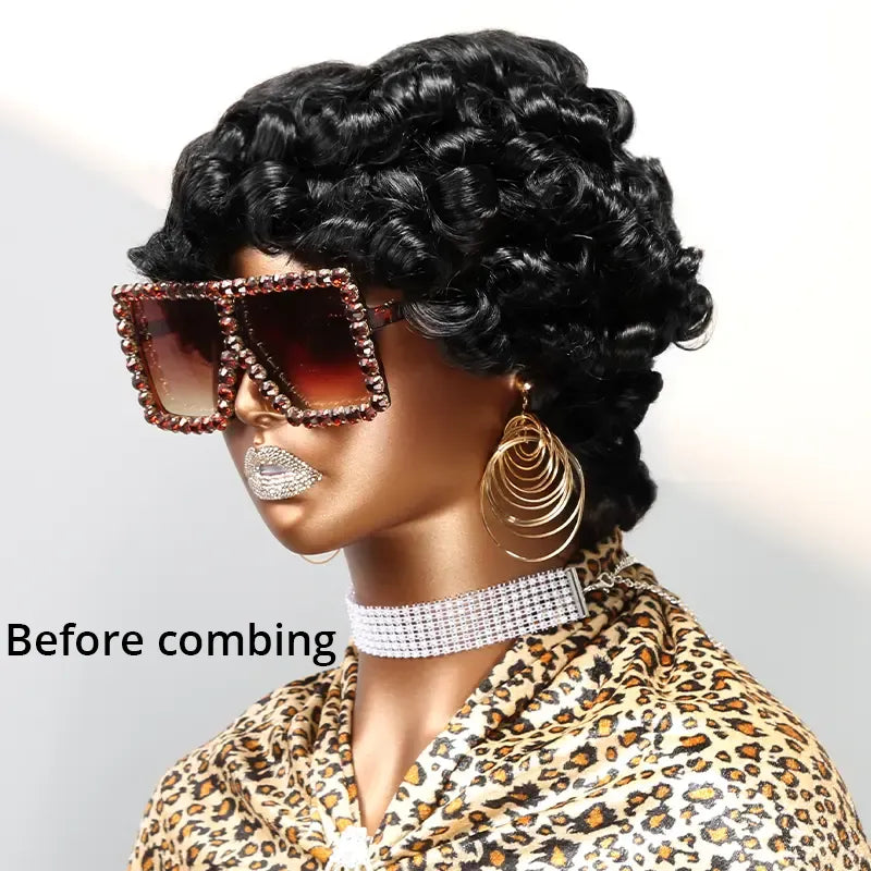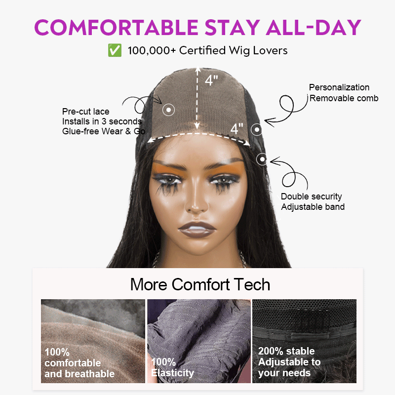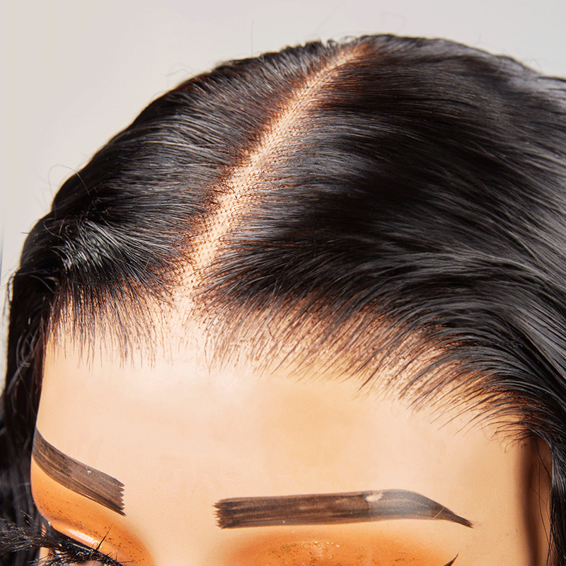 Glueless lace wigs are lace wigs that do not require the use of glue or similar adhesives to keep them attached. Traditionally, these wigs would come with combs, straps, or clips already installed, allowing the wearer to attach the wig to their head without the need for glue. They are easy to wear and very realistic to the naked eye. It is an invisible lace wig.