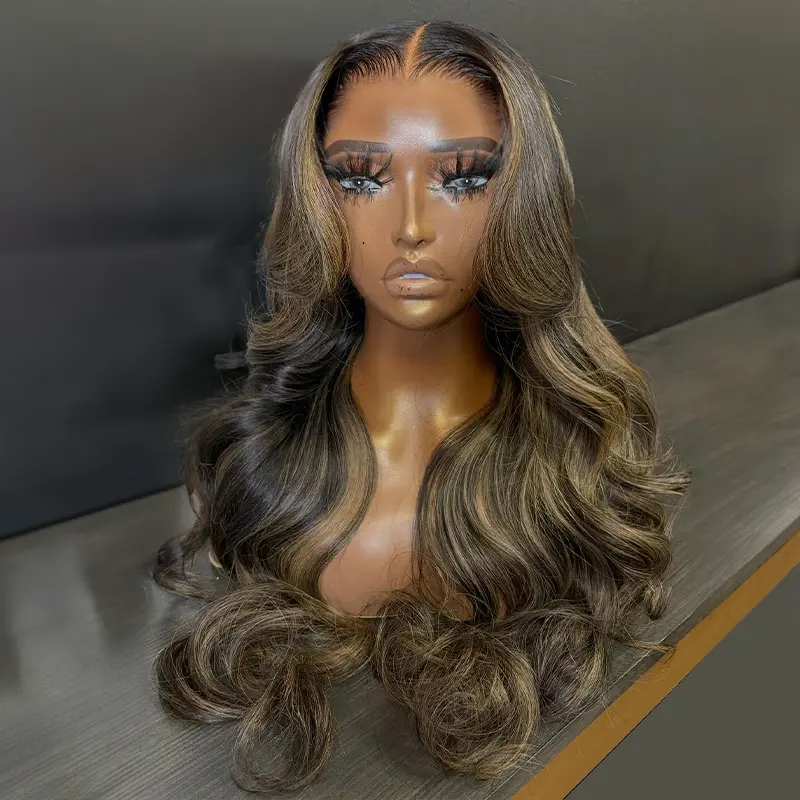 5x5 Glueless Knotless Blonde Highlight Body Wave Wig With Adjustable Cap -