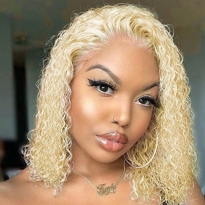 613 Blonde Curly Bob Wig 13x4 Lace 180% Density Deep Wave Short Hair
