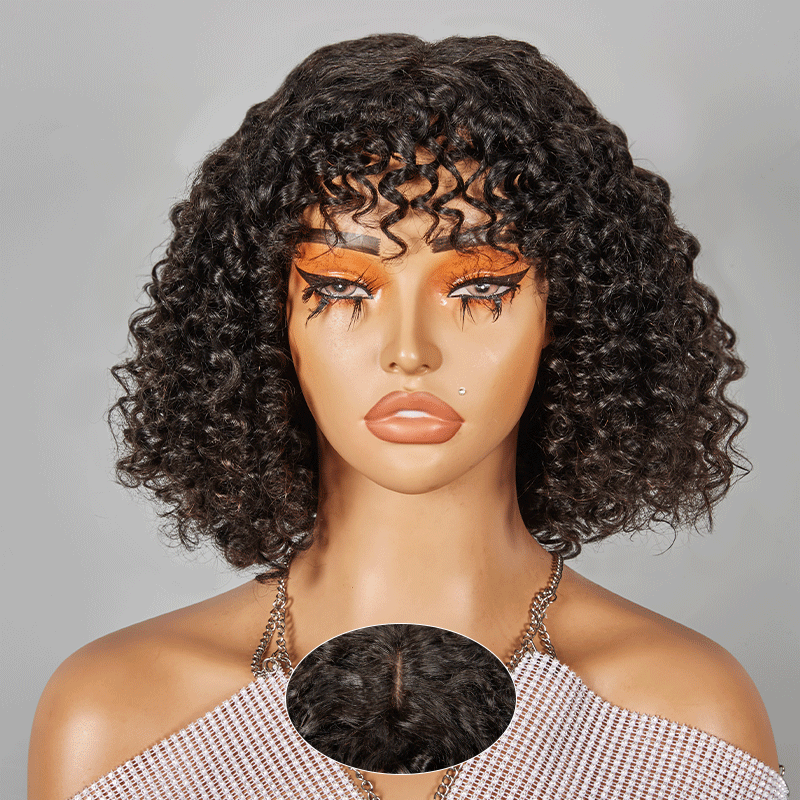 Glueless Bob Wig With Bangs Water Curly Textured Human Hair