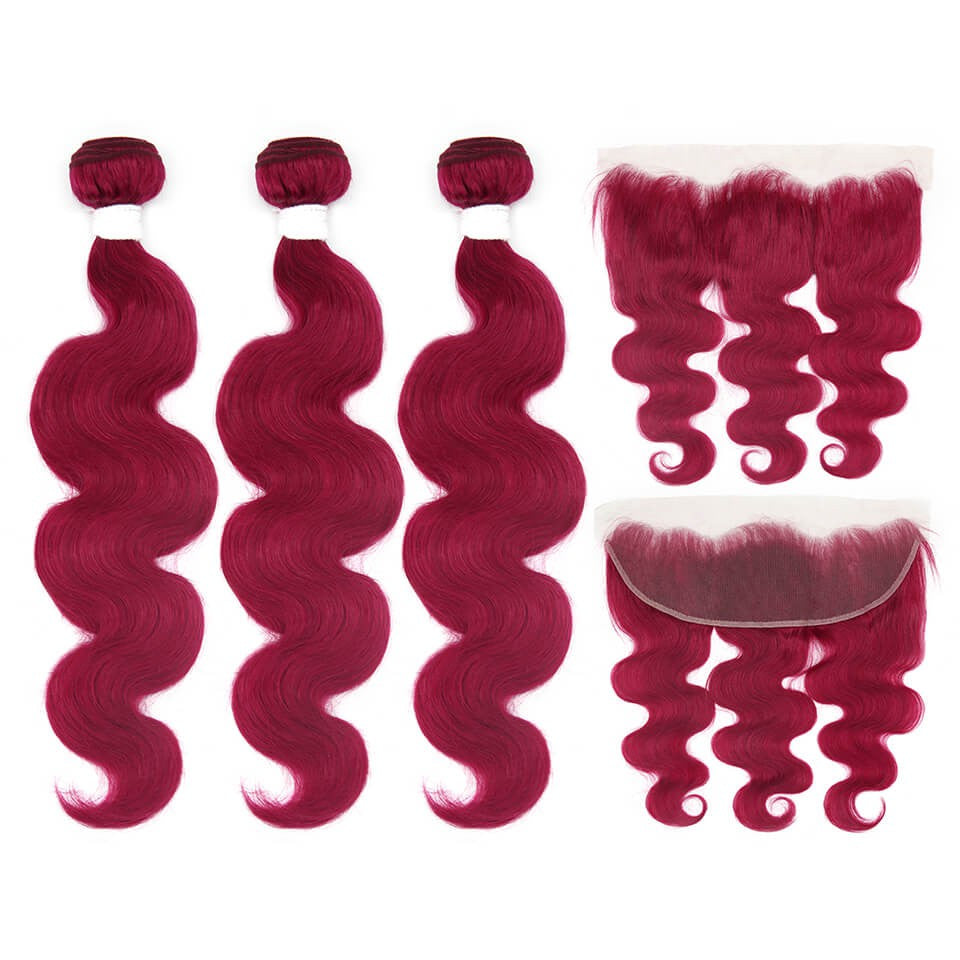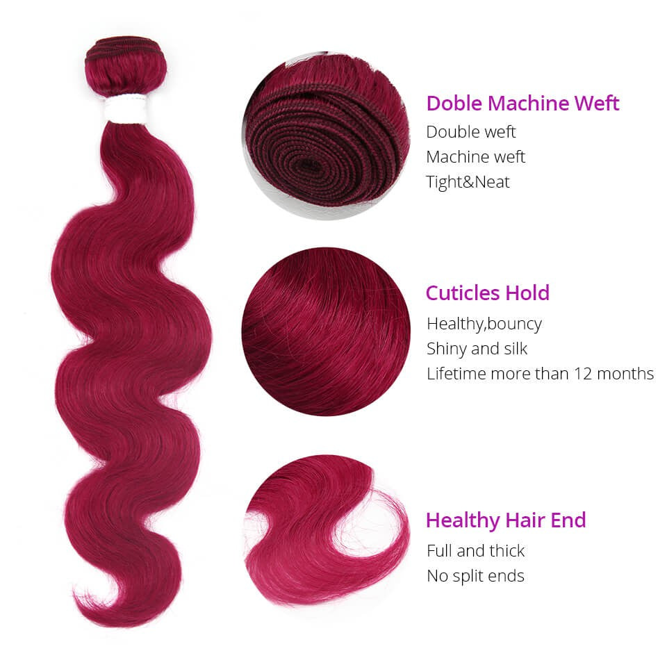 HJ Weave Beauty Burgundy Colored Virgin Hair Body Wave Bundle Deal