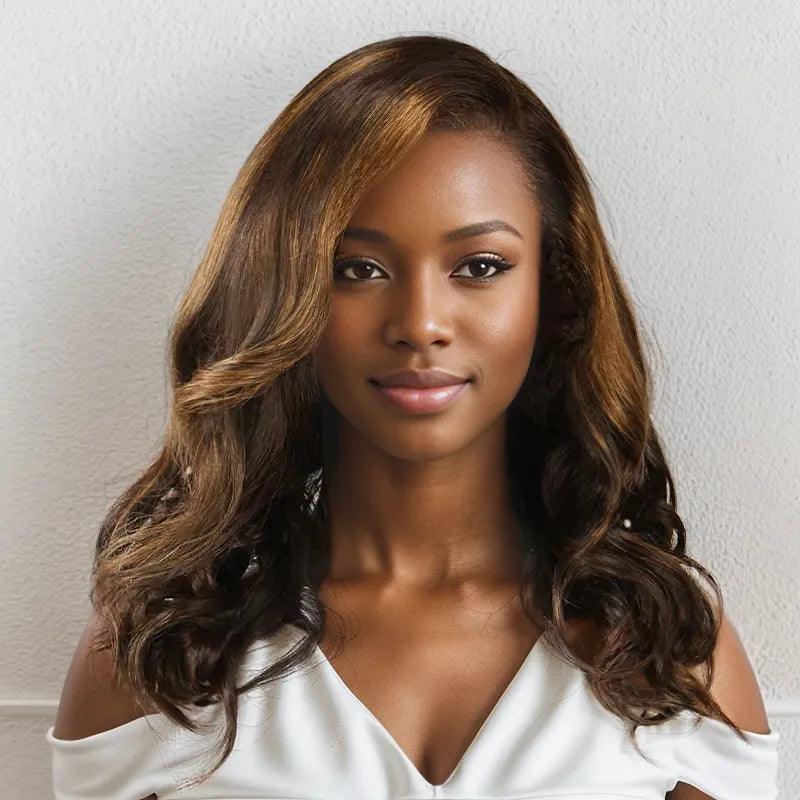 13x4 Glueless Brown Mixed Color Highlight Bob Body Wave Wig