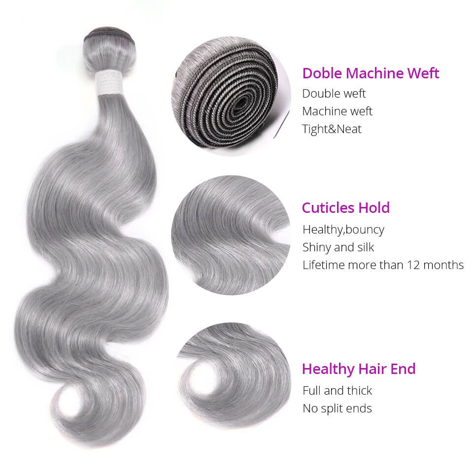 HJ Weave Beauty Gray Colored Virgin Hair Body Wave Bundle Deal
