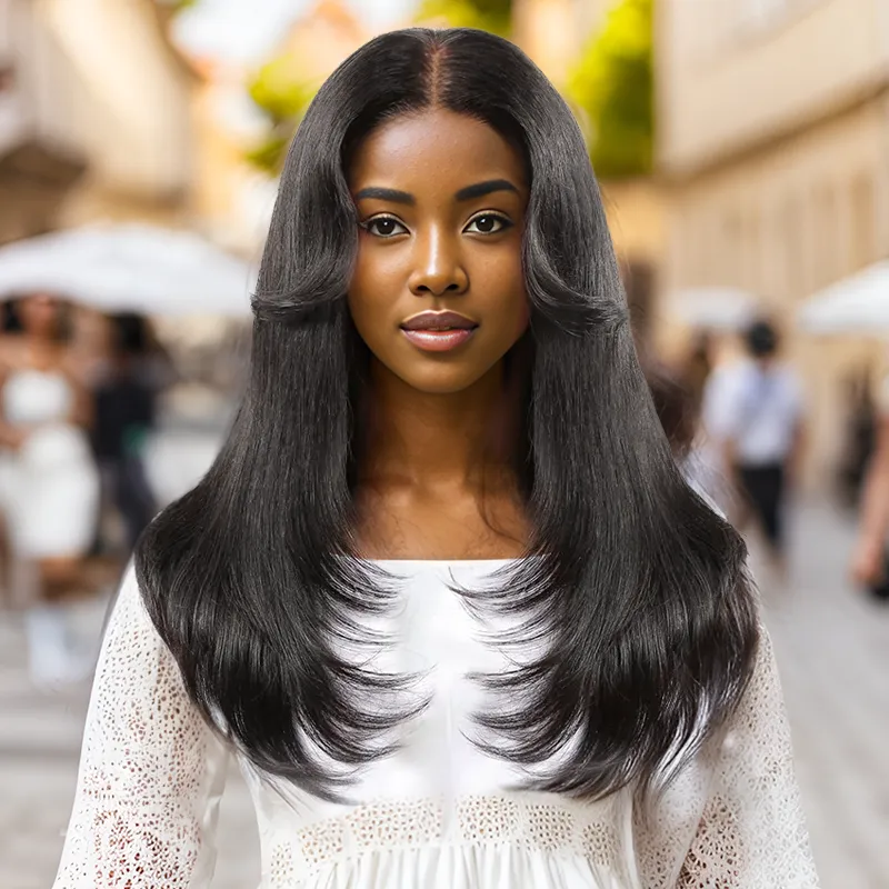 9x6 Designer Layered Glueless Wear&Go Fringe Curtain Wig Natural Wave